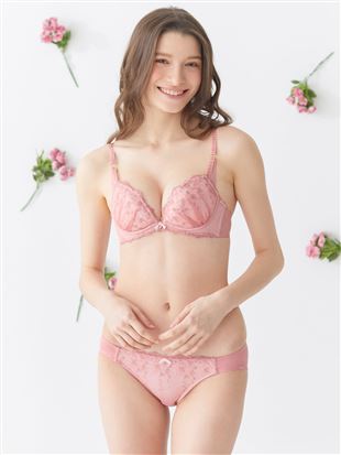 - ふっくらバストメイク:脇部分が高く、前中心が低いL字ワイヤーとパッドにより、脇からしっかりとバストを寄せ、谷間とデコルテを美しく演出します。
